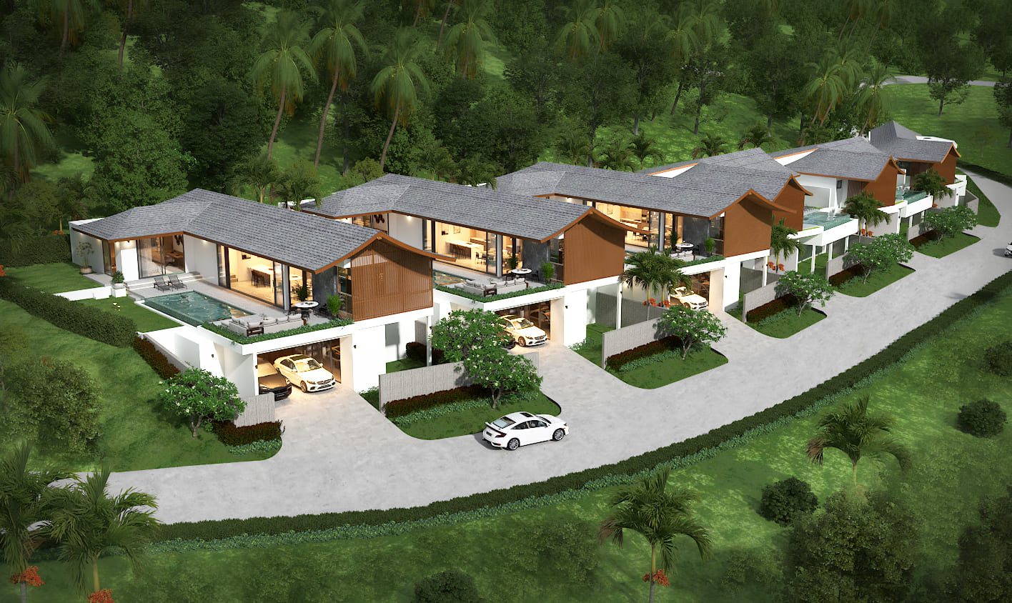 Each villa is designed with a modern tropical aesthetic, combining contemporary architecture with the natural beauty of Lamai’s surroundings.