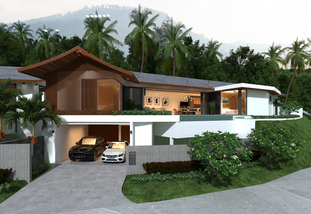 Modern hillside villas in Lamai with private pools & panoramic mountain views.